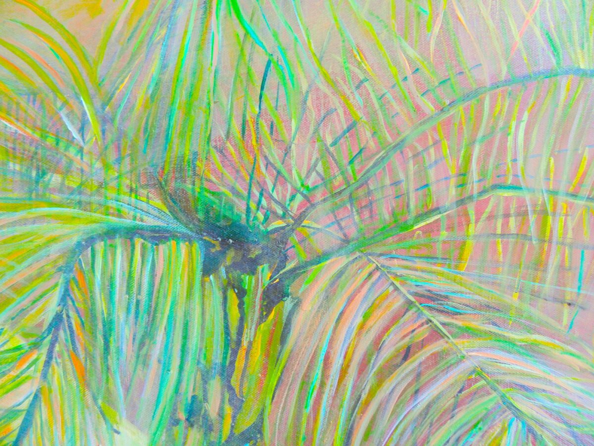 This painting is an example of recomposing a photo according to my perception of reality, a snapshot of my present life connected to the past.